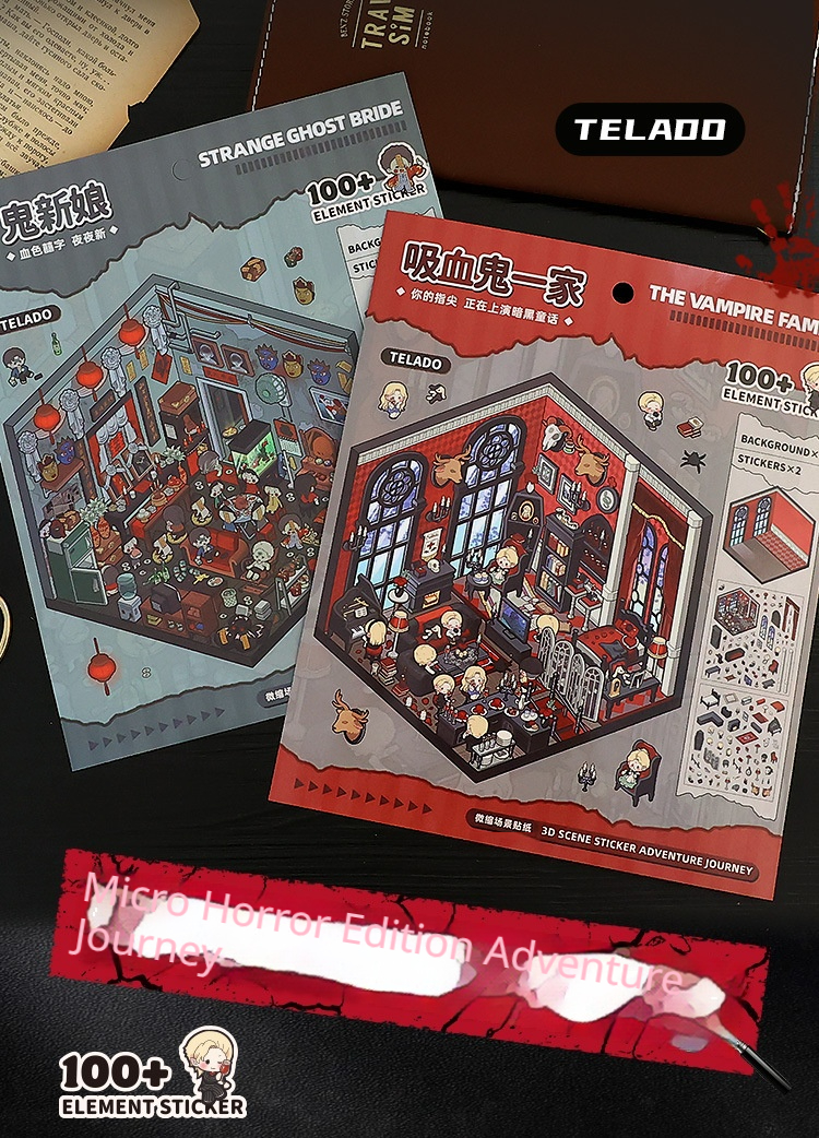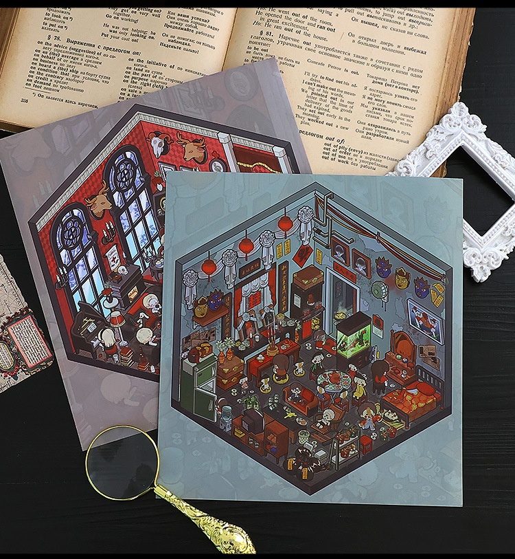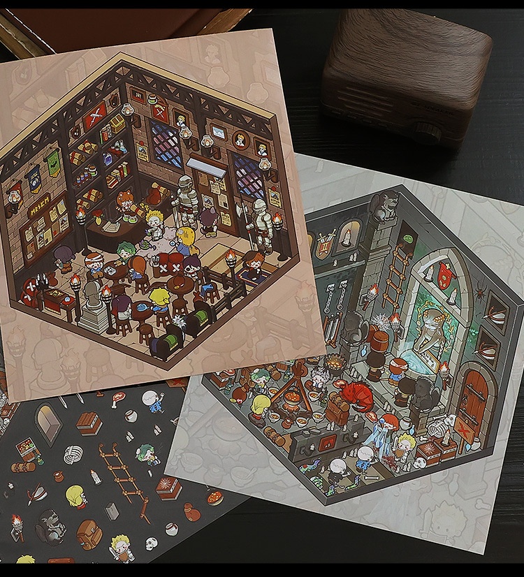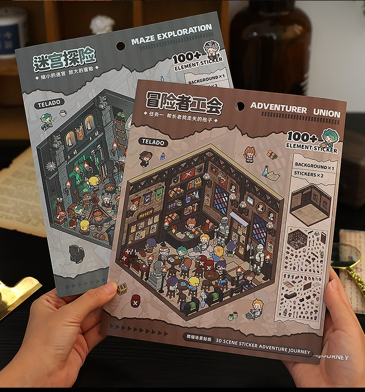 Step into imaginative worlds with the Adventure Journey Miniature Scene Sticker Set, featuring creative themes such as Adventurers’ Guild, Labyrinth Exploration, Ghost Bride, Vampire Family, Abby’s Room, Esports Cabin, Millennial Memories, and Goldfish Soup House. Each design brings storytelling and fun to your journals, planners, and DIY collage projects.