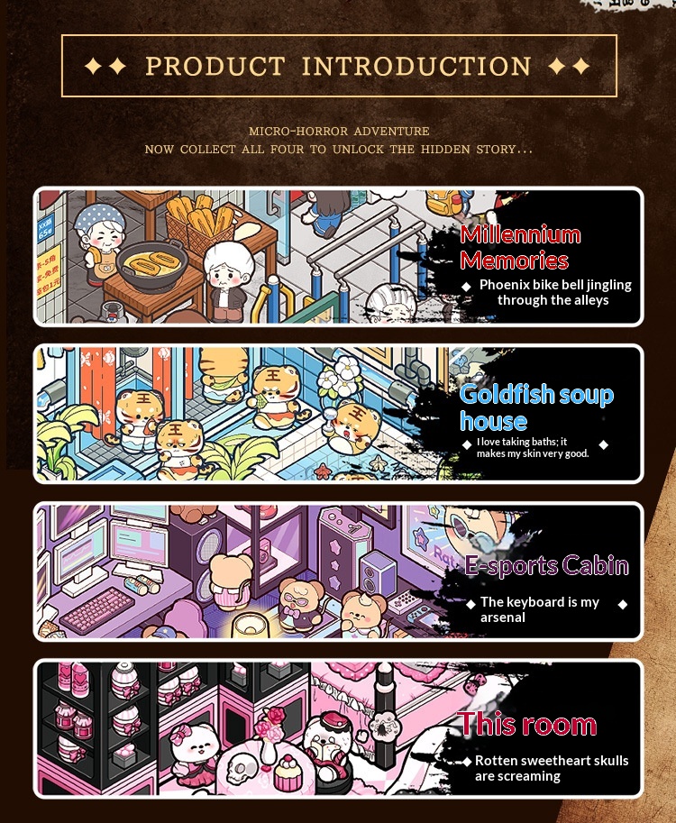 - Themes: Adventurers’ Guild, Labyrinth Exploration, Ghost Bride, Vampire Family, Abby’s Room, Esports Cabin, Millennial Memories, Goldfish Soup House